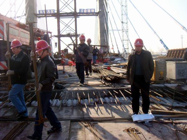 根據年前項目部會議計劃安排,節(jié)前應完成主跨掛籃懸澆塊第十節(jié)段的澆筑,然而由于年底大雪天氣影響,致使原計劃有所推遲。為搶回工期,正月初六項目部員工便全部到崗,立即展開謀劃,組織復工。由于作業(yè)隊外地工人過年回家未能及時全部到崗,項目部人員在江仲明經理的率領下,親自下工地抬鋼筋、穿波紋管、綁扎鋼筋,干起了體力活,補上了未到崗工人的缺,使施工速度明顯加快。21日晚,在大家的共同努力下,主跨第十節(jié)段混凝土順利澆筑完畢。在節(jié)后的六安市建筑工地中我部率先完成了混凝土澆筑工作,在虎年的新春里開了一個好頭。六安市《大別山晨刊》報以《部分工人未到崗技術人員頂上去——新春伊始淠望路大橋搶抓工期》為題在頭版對我部的事跡進行了專題報道。