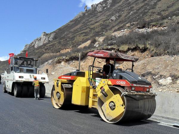 四川漳黃02標在整個標段率先攤鋪瀝青試驗段