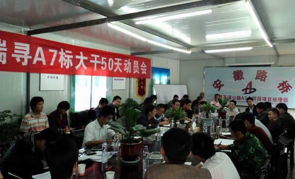 會(huì)議首先下達(dá)了大干50天的施工任務(wù)目標(biāo),并公布了相應(yīng)獎(jiǎng)懲措施,要求各施工班組務(wù)必按質(zhì)按時(shí)完成施工任務(wù)。隨后,RA3駐地辦駐地工程師吳勝和A7監(jiān)理組組長(zhǎng)萬(wàn)軍分別對(duì)大干50天作出指示。最后,項(xiàng)目經(jīng)理劉大雷從工程進(jìn)度、質(zhì)量和安全等方面進(jìn)行了總結(jié)并提出要求,強(qiáng)調(diào)了施工過(guò)程中安全、質(zhì)量、進(jìn)度的重要性,三者要同時(shí)抓,要加強(qiáng)環(huán)保與文明施工,建立一個(gè)和諧的施工環(huán)境。