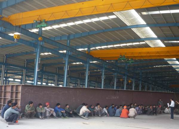 我項(xiàng)目部鋼箱梁預(yù)制場(chǎng)位于長(zhǎng)豐縣五山鎮(zhèn),距離項(xiàng)目部約43公里。項(xiàng)目部安全管理人員驅(qū)車一個(gè)半小時(shí)趕到了梁廠。中午12:50,梁廠職工70余人在生產(chǎn)車間接受交底。這次安全交底的內(nèi)容主要有崗位教育以及鋼箱梁預(yù)制技術(shù)交底。整個(gè)交底時(shí)間持續(xù)近一個(gè)半小時(shí)。交底過程中,項(xiàng)目部安全管理人員采用案例與安全規(guī)范要求相結(jié)合的方式,并穿插形象的事例,希望現(xiàn)場(chǎng)職工“鎖好安全的大門,嚴(yán)防事故的小偷”、“不能把安全當(dāng)做抽煙,告訴你抽煙有害健康,你就在繼續(xù)抽煙了”。現(xiàn)場(chǎng)職工認(rèn)真聽講、積極互動(dòng),在反饋?zhàn)陨砀惺艿耐瑫r(shí)接受了安全教育。交底結(jié)束后,現(xiàn)場(chǎng)工人認(rèn)真答填了安全教育試卷。