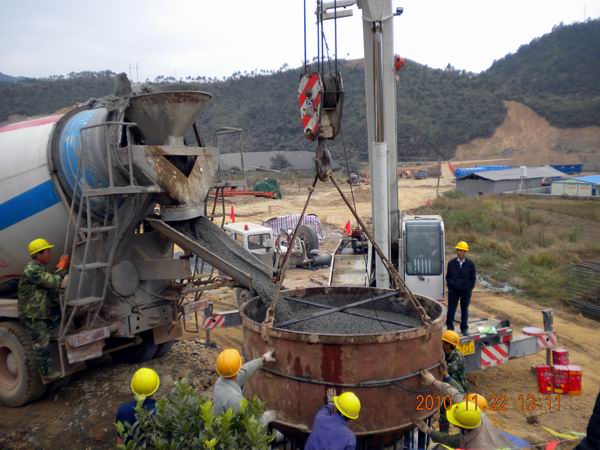12時(shí)08分,在這個(gè)風(fēng)和日麗的午后,第一孔水下灌注樁樁基灌注工作正式開始。灌注過程中,我部遵照“嚴(yán)控質(zhì)量關(guān),嚴(yán)把安全關(guān)”的要求進(jìn)行施工,項(xiàng)目部技術(shù)員與安全員均到現(xiàn)場(chǎng)進(jìn)行了詳細(xì)的施工技術(shù)交底和安全技術(shù)交底。