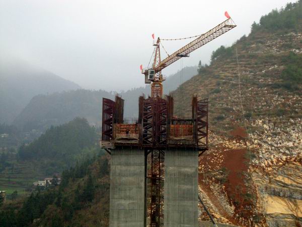 巖子腳特大橋是目前我公司施工歷史上最大跨徑的橋梁。本次澆注的是高達74米的4號主墩的左幅0#塊,設計長度13米,梁高10.5米,梁寬10米。在如此高墩上進行施工也是公司從沒有過的,0#塊施工更是橋梁施工關(guān)鍵技術(shù)所在,其難度和安全風險可想而知。