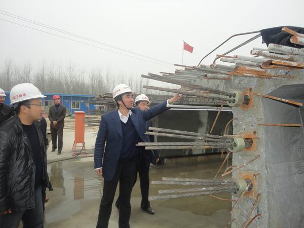 視察過程中,何站長對我部預(yù)制梁場的施工質(zhì)量、工藝給予了充分的肯定和贊揚,通過察看安全警示牌、詢問現(xiàn)場安全員,對我部安全工作的全面細致也豎起了大拇指,并對我安徽省公路橋梁工程公司表達了由衷的贊許。在肯定我們的工作成績的同時,何站長也要求我們要繼承和發(fā)揚安徽省路橋公司的優(yōu)良傳統(tǒng),細化工作、進一步提高工程質(zhì)量。
