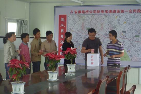 本次捐款活動,我項目部積極響應(yīng)公司市政項目團支部發(fā)出的捐款倡議,充分發(fā)揚了省路橋公司“團結(jié)互助”的優(yōu)良傳統(tǒng)和“一方有難、八方支援”的人道主義精神,項目全體員工真誠的伸出援助之手,積極奉獻愛心,默默的為許璕同志提供力所能及的幫助,并祝愿他早日康復(fù)。