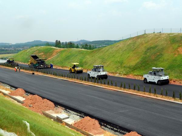 上午9時(shí),各項(xiàng)工作準(zhǔn)備就緒,隨著項(xiàng)目經(jīng)理一聲令下,拌合樓、攤鋪機(jī)、壓路機(jī)等設(shè)備全部運(yùn)轉(zhuǎn)起來?,F(xiàn)場施工人員各司其職,井然有序。隨著一車車混合料倒進(jìn)攤鋪機(jī)料斗,一段平整的瀝青中面層呈現(xiàn)在眼前。經(jīng)過壓路機(jī)的反復(fù)碾壓,最終經(jīng)現(xiàn)場試驗(yàn)檢測,各項(xiàng)數(shù)據(jù)均符合施工規(guī)范要求,為下階段大面積施工奠定了基礎(chǔ)。