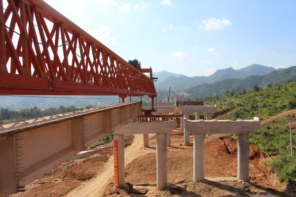 昌寧高速C5標(biāo)完成龍坊高架第一片40米T梁架設(shè)