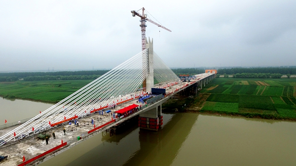 8月22日上午9時58分,安徽省內(nèi)跨度最大的公路矮塔斜拉橋——濟(jì)祁高速淮河特大橋主橋順利實(shí)現(xiàn)合龍,為實(shí)現(xiàn)年底建成通車奠定了堅實(shí)基礎(chǔ)。