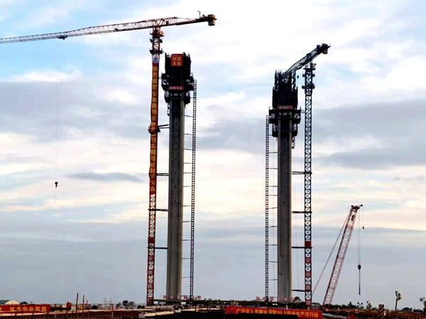 引江濟(jì)淮項目新橋大道橋首根塔柱順利封頂