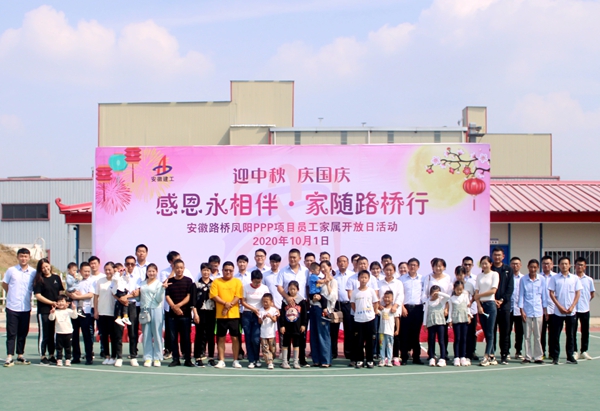 今年的中秋喜逢國慶,家與國撞了滿懷。在舉國歡慶、萬家團(tuán)圓的欣喜時(shí)刻,仍有很多路橋人為了工程建設(shè),舍小家、為大家,堅(jiān)守崗位、奮戰(zhàn)一線。為進(jìn)一步深化公司“家文化”建設(shè),10月1日,鳳陽PPP項(xiàng)目黨支部精心組織開展了“感恩永相伴•家隨路橋行”員工家屬日活動(dòng),20余名員工家屬受邀到項(xiàng)目部與家人團(tuán)聚,共慶佳節(jié)。