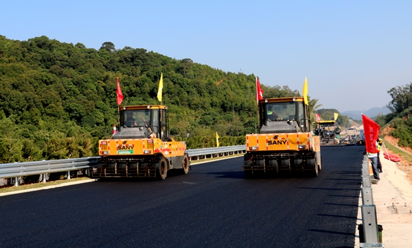 大浦高速路面項目瀝青混合料單日和單月產(chǎn)量刷新記錄