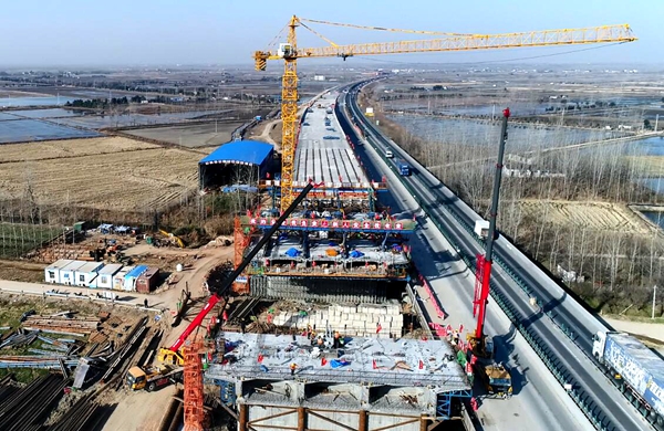 固蚌高速02標(biāo),春節(jié)期間加班加點推進(jìn)工程建設(shè),在南岸引橋右幅順利實現(xiàn)貫通后,170名參建人員搶抓晴好天氣,保持大干勢頭,同步推進(jìn)四個工區(qū)橋面作業(yè),架橋機、履帶吊等機械滿載開工,為3月底達(dá)成橋面工程節(jié)點奠定堅實基礎(chǔ)。蕪黃項目再動員、再鼓勁,人員輪休、機械不停,荊竹坑大橋、程家坦隧道及附屬工程穩(wěn)步推進(jìn),2#預(yù)制梁場每天以8片梁速度加速生產(chǎn),全力沖刺半幅通車節(jié)點目標(biāo)。