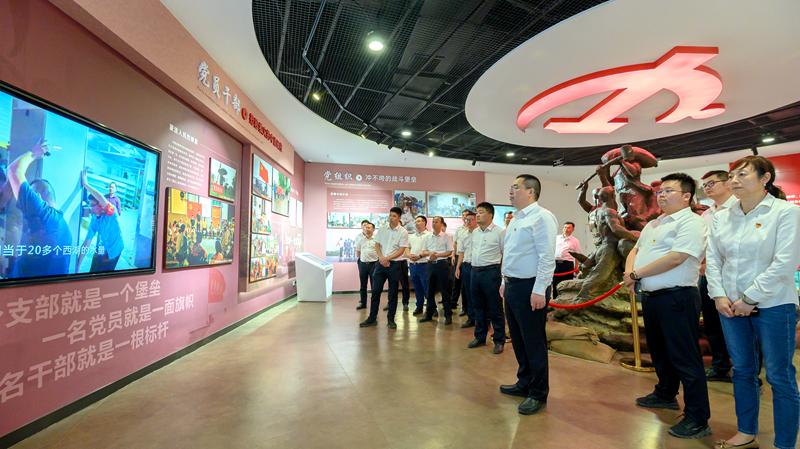在調研交流環(huán)節(jié),全體人員先后參觀了項目預制梁場、阜南南互通施工現場,實地查看了項目標準化建設、安全文明施工和技術工藝運用情況,并在項目會議室圍繞推動黨建生產深度融合、加強人才隊伍建設和深化項目基礎管理等方面開展了座談交流。在參觀踐學環(huán)節(jié),全體人員來到被稱為“千里淮河第一閘”的王家壩閘,重溫習近平總書記考察安徽重要講話指示精神。在講解員的帶領下,大家通過觀看《王家壩紀錄片》和參觀王家壩抗洪紀念館內的7個展廳,全面了解蒙洼群眾的抗洪歷史,深入領會王家壩精神的豐富內涵。