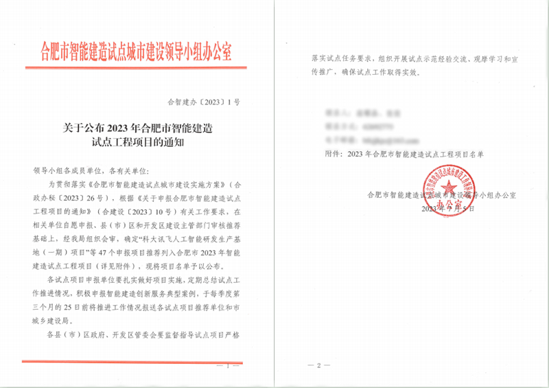 公司兩重點項目入選2023年合肥市智能建造試點工程項目