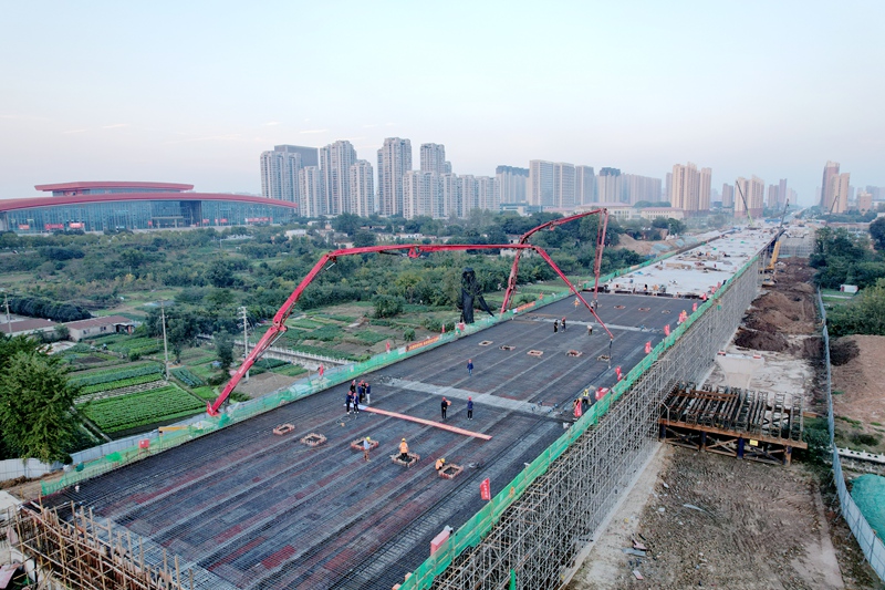 10月13日晚,信陽新十一大道項目順利完成主線橋梁最后一聯(lián)箱梁頂板混凝土完成澆筑,標(biāo)志著主線橋梁全線貫通,向著奮力沖刺四季度、實現(xiàn)年內(nèi)建成通車目標(biāo)邁出了堅實一步。