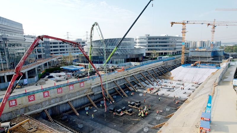 11月3日,桃花科創(chuàng)產(chǎn)業(yè)園項目二期二標段首塊主樓筏板順利澆筑,標志著項目二期建設全面進入主體結(jié)構(gòu)施工階段。