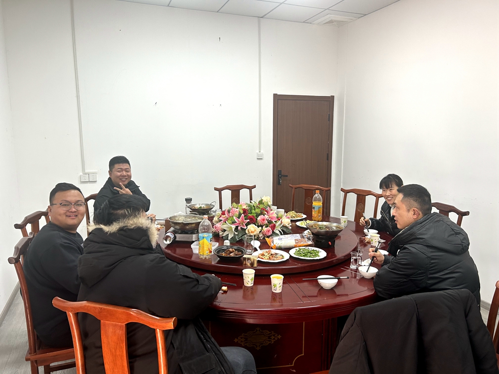 鳳毛快速通道、淮桐高速等項(xiàng)目堅(jiān)守在崗的建設(shè)者們一起貼春聯(lián)、掛燈籠,大家聚在一起共享年夜飯,一同迎接甲辰龍年的到來(lái)。