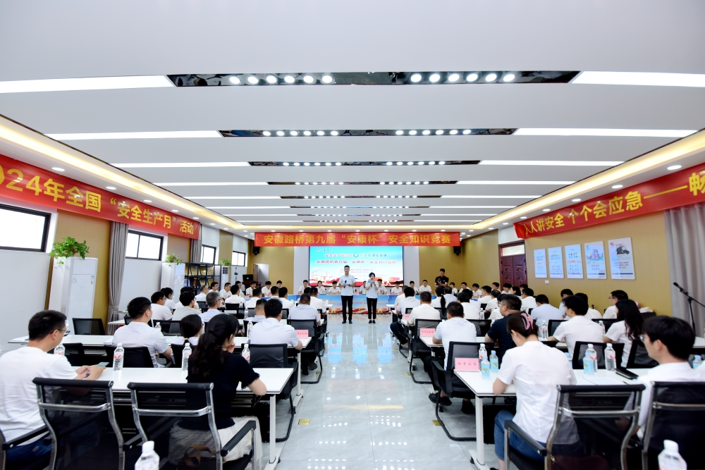 6月4日下午,安徽路橋第九屆“安康杯”安全知識競賽成功舉辦。此次競賽以“安全生產提品質 科學管理促安康”為主題,旨在深化安全生產理念,提升員工安全素質。安徽省建設建材工會(省住建廳文明辦)四級調研員邱亮出席活動并作點評講話,安徽省建設工程質量與安全協會副秘書長趙永生出席活動,公司黨委書記、董事長錢申春致辭。建工控股工程管理部(安全監(jiān)察局)副部長胡曉東,公司領導韋秀剛、石懷遠及所屬各單位有關負責同志、職工代表共計80余人現場觀看比賽。
