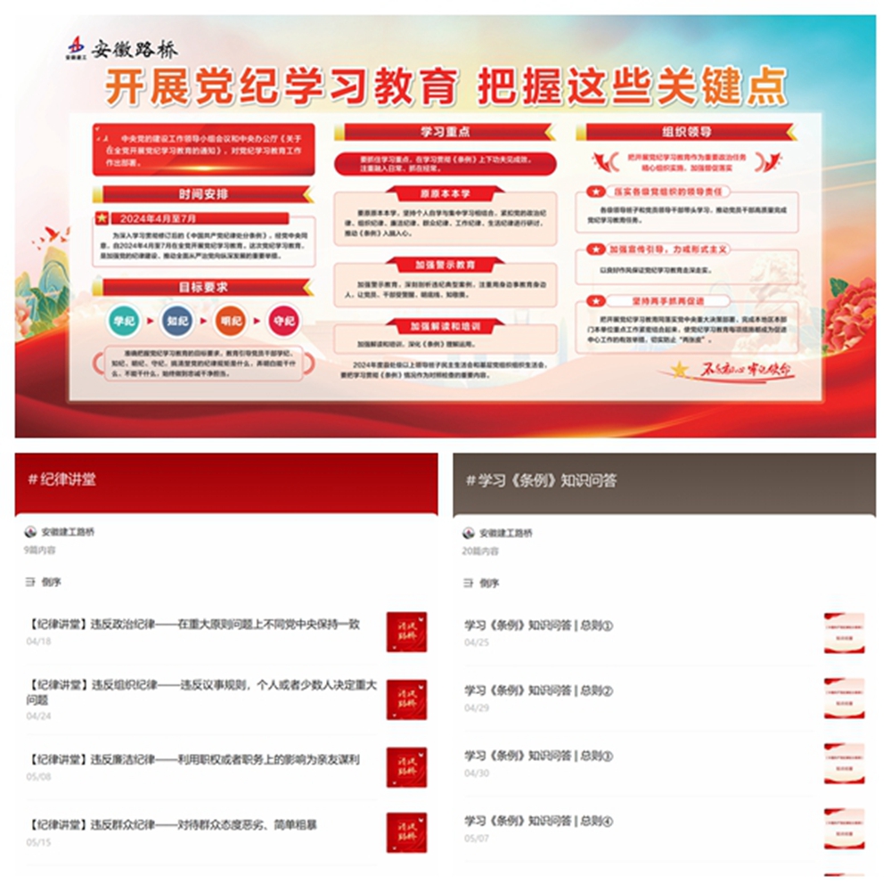 黨紀(jì)學(xué)習(xí)教育開展以來,公司黨委高度重視宣傳引導(dǎo)、氛圍提升。為擴(kuò)大宣傳引導(dǎo)的接觸面,公司黨委統(tǒng)籌制定發(fā)布了黨紀(jì)學(xué)習(xí)教育展板。同時(shí),立足“清風(fēng)路橋”建設(shè),加大宣傳力度,綜合運(yùn)用官網(wǎng)、官微,設(shè)立“紀(jì)律講堂”“學(xué)習(xí)《條例》知識(shí)問答”等專欄,累計(jì)推出黨紀(jì)學(xué)習(xí)教育相關(guān)報(bào)道和學(xué)習(xí)材料80余篇次,做到“每日推送”。組織全體黨員職工參加公司內(nèi)網(wǎng)《條例》線上知識(shí)測(cè)試,以考助學(xué)、以訓(xùn)促學(xué),鞏固學(xué)習(xí)成果,檢驗(yàn)學(xué)習(xí)成效,在全公司營造學(xué)紀(jì)、知紀(jì)、明紀(jì)、守紀(jì)的良好氛圍。各級(jí)黨組織通過“三會(huì)一課”等方式開展專題學(xué)習(xí)230余次,受教育黨員、職工累計(jì)超2500人次。