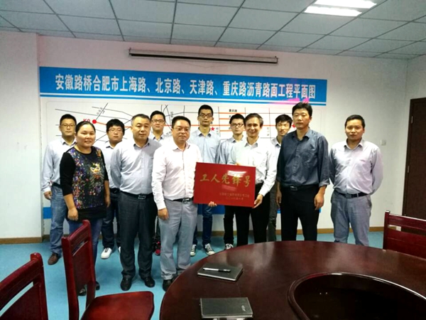 10月18日、20日, 集團(tuán)公司工會(huì)副主席吳曉伍一行來(lái)到公司承建的上海路路面項(xiàng)目、池州S321路面項(xiàng)目,分別對(duì) “工人先鋒號(hào)”和“職工書(shū)屋”創(chuàng)建工作進(jìn)行考核驗(yàn)收。公司工會(huì)主席楊建強(qiáng),總經(jīng)理助理、路面公司總經(jīng)理江仲明陪同。