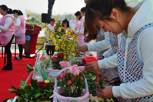在主題為“最美的花兒獻(xiàn)給你”的花藝比賽中,來(lái)自兩家單位的十位女職工沉著冷靜,認(rèn)真挑選花材,巧妙構(gòu)思作品,優(yōu)雅的動(dòng)作,嫻熟的技藝,使得一個(gè)個(gè)設(shè)計(jì)新穎、造型亮麗的花藝作品呈現(xiàn)在觀眾面前,為三月的龍舒大地增添了幾許春色。在 “百花齊放”踩氣球友誼賽中,兩家單位女職工自由組合,隨著主持人的一聲令下,選手們一沖而上,互相踩破對(duì)手的氣球,比賽氣氛熱烈,充滿激情,吶喊聲、歡笑聲匯聚成一條快樂(lè)的河流。在團(tuán)體跳繩比賽中,兩隊(duì)隊(duì)員齊心協(xié)力,熱情高漲,彩繩離地起,群鳳當(dāng)空舞,盡情演繹著巾幗魅力,把現(xiàn)場(chǎng)氣氛推向高潮。