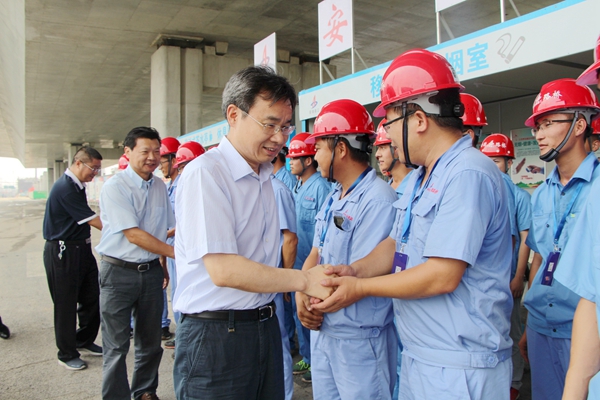連日以來,高溫酷暑籠罩著江淮大地,但廣大安徽路橋人依然堅守施工一線,揮汗如雨。7月26日上午11時,安徽省住建廳黨組書記、廳長張?zhí)炫?,黨組成員、副廳長吳桂和,副巡視員劉少為一行在集團工會主席徐曉光,公司董事長、黨委書記、總經理孫學軍等有關人員的陪同下,深入合肥阜陽北路高架項目看望慰問一線建設者,叮囑項目部做好防暑降溫工作,切實保障職工身心健康。