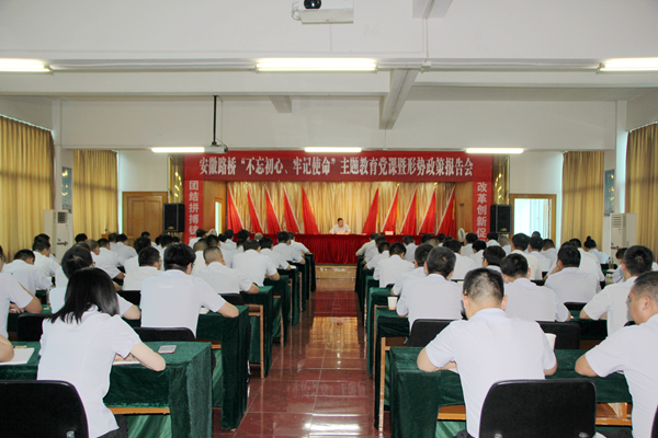 為進(jìn)一步推深做實(shí)“不忘初心、牢記使命”主題教育,按照公司主題教育方案部署,8月2日下午,股份公司副總經(jīng)理、公司黨委書記、董事長孫學(xué)軍以“守初心 擔(dān)使命 找差距 抓落實(shí)——用習(xí)近平新時(shí)代中國特色社會(huì)主義思想指導(dǎo)打造品質(zhì)路橋卓越路橋”為主題,作了一場主題教育黨課暨形勢(shì)政策報(bào)告會(huì)。集團(tuán)主題教育第四指導(dǎo)組副組長王永來到會(huì)指導(dǎo)。公司領(lǐng)導(dǎo),中層干部,在肥項(xiàng)目經(jīng)理、黨支部負(fù)責(zé)人,機(jī)關(guān)全體黨員100余人參加了報(bào)告會(huì)。