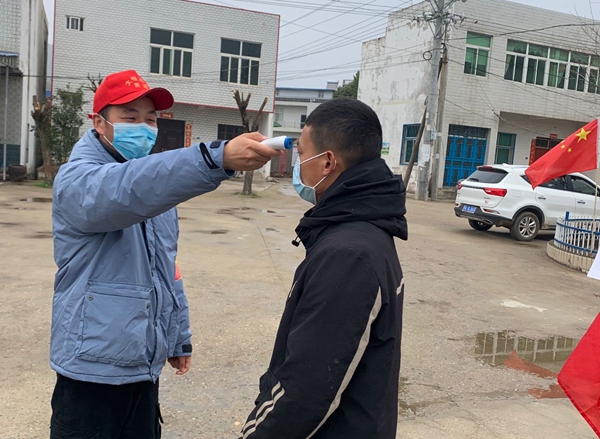 中共黨員董峰是興贛北延A6標(biāo)質(zhì)檢部副部長(zhǎng),他的家鄉(xiāng)在湖北省孝感市大悟縣呂王鎮(zhèn)董灣村,是全國(guó)疫情重災(zāi)區(qū)。疫情發(fā)生后,他積極響應(yīng)號(hào)召,主動(dòng)請(qǐng)戰(zhàn),申請(qǐng)加入到當(dāng)?shù)氐目埂耙摺钡谝痪€。至今,他已累計(jì)檢查來(lái)往群眾640人次,每天統(tǒng)計(jì)每家每戶所需生活物資并陸續(xù)送上門,在面對(duì)群眾的不理解時(shí),耐心溝通解釋,被董灣村稱贊為最美“逆行者”。