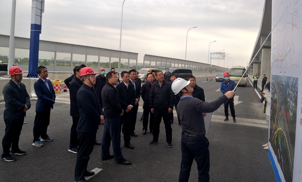 在郎溪路高架施工現(xiàn)場,郭強(qiáng)聽取了項目負(fù)責(zé)人關(guān)于項目工程概況、施工進(jìn)展、安全質(zhì)量文明施工等情況的匯報,對項目建設(shè)給予了充分肯定,對全體參建員工的辛勤努力表示感謝。他要求,項目部要及時總結(jié)經(jīng)驗,抓細(xì)抓實疫情防控,狠抓安全、質(zhì)量、進(jìn)度管理,早日實現(xiàn)通車目標(biāo)。
