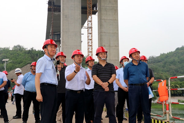 6月23日下午,河南省交通廳二級巡視員李強帶領河南省高速公路“雙千工程”建設推進會觀摩團到黃河特大橋觀摩。