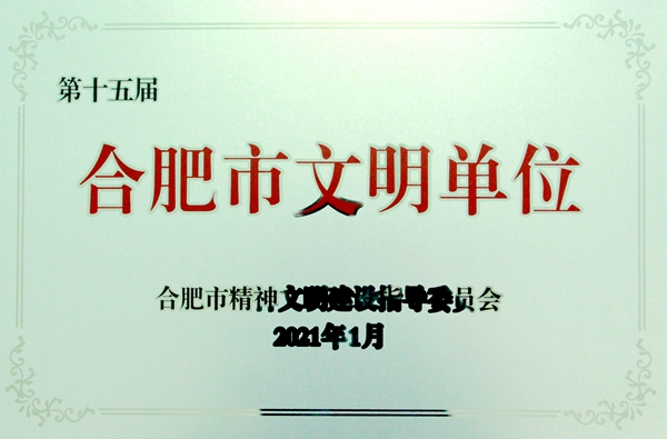 公司榮獲合肥市第十五屆文明單位榮譽(yù)稱號(hào)