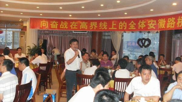 晚上,項目部安排慶功晚宴,公司總經(jīng)理汪衛(wèi)東攜路面公司領導班子成員,特地來到工地與大家歡聚一堂。